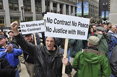 Daley wasn’t the only target. Protesters also carried signs that read “Pay the Real Police-Not Weis,†and, “No Contract, No Peace, No Justice with Weis.’’